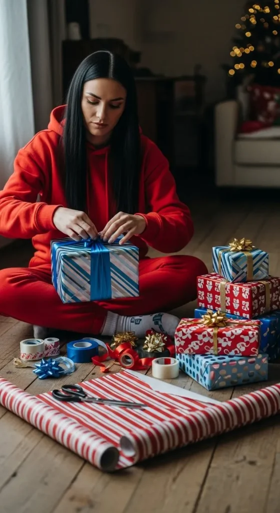 Matching pyjamas make the morning photos extra fun. Go for soft flannel or breathable cotton. You don’t need to buy new ones every year — reuse or mix patterns that match the same colour palette. Add fuzzy slippers to finish the look. It’s a simple, low-cost way to make your Christmas photos special.