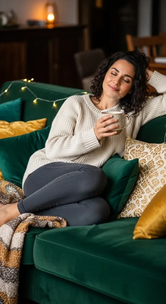 Velvet feels festive without trying too hard. A velvet two-piece lounge set gives you comfort and style together. Look for dark jewel tones like green or burgundy. Add delicate earrings for a touch of polish. It’s great for dinner and for a movie marathon after.