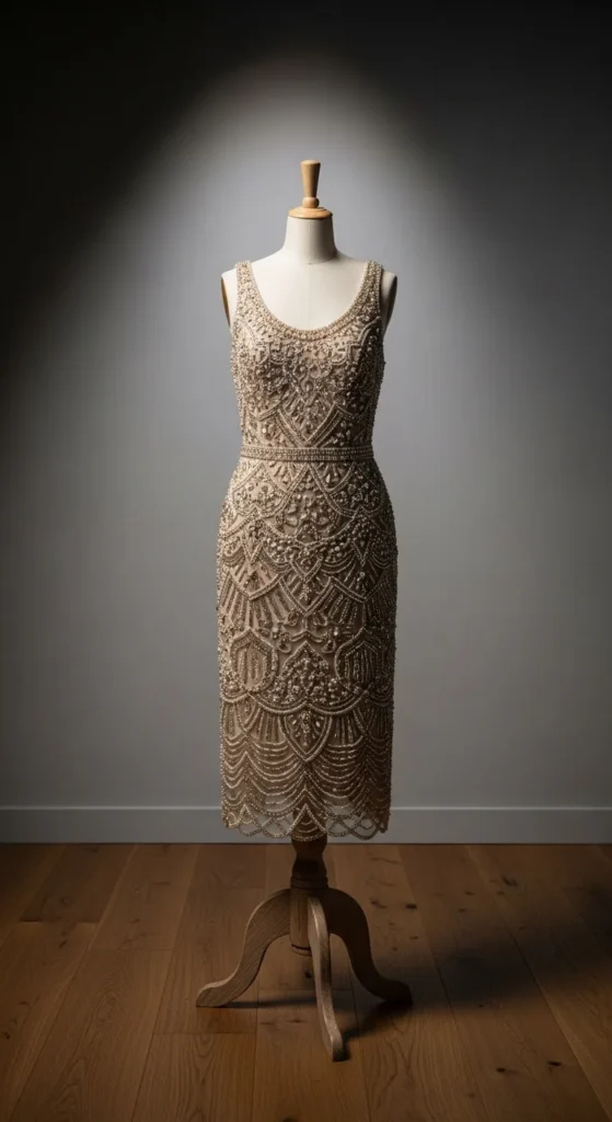 A beaded midi dress feels soft and romantic. The colour photographs well and suits almost every skin tone. Beading adds detail without needing extra jewellery. Choose a fitted or A-line shape depending on your comfort. If you want something affordable, pick a lightly embellished dress instead of full beading. DIY idea: sew pearl beads onto the neckline or straps to add more texture. Pair with nude heels and a light shawl. This outfit works for galas that are semi-formal or cocktail style.
