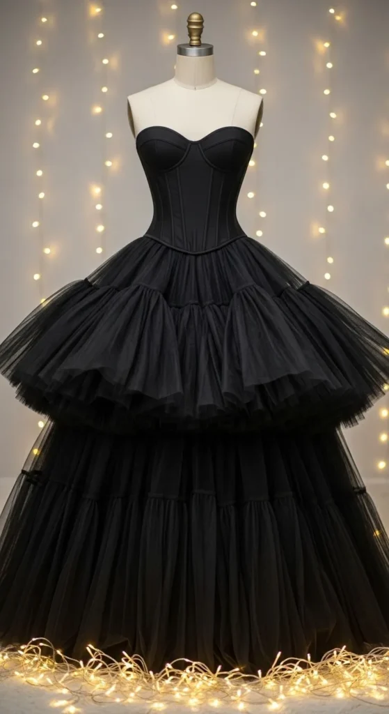 A black tulle ball skirt paired with a corset top gives you a dramatic and elegant shape. The skirt adds volume, while the corset adds structure. This duo works well for charity galas that lean more formal. If you’re on a budget, choose tulle skirts from costume or prom sections—they’re often cheaper and just as pretty. Add a satin ribbon as a belt for extra detail. DIY idea: attach small faux pearls throughout the tulle for a dreamy effect. Pair with soft waves or a neat bun and simple accessories, letting the silhouette speak for itself.