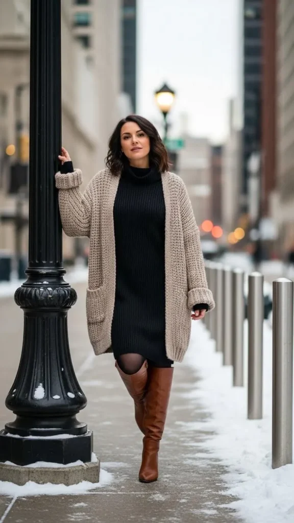 5. Oversized Cardigan with Turtleneck Dress