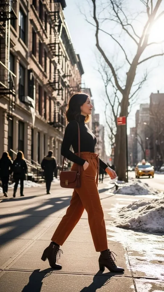 14. Turtleneck and High-Waisted Corduroys