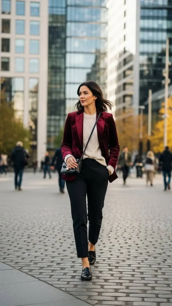 9. Velvet Blazer Over Knitwear
