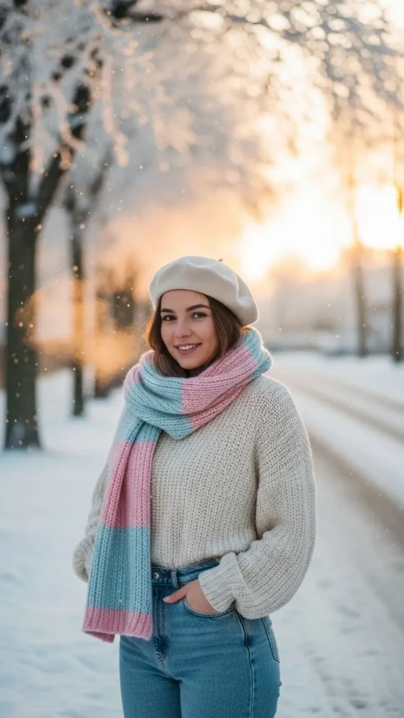 Chunky knit sweaters are winter staples. Look for ones with interesting textures like cables or ribbing for a little extra charm. Pair them with high-waisted jeans to balance warmth and style. Tuck your sweater slightly in front to define your waist. This combo is super affordable—grab a cozy knit from thrift stores or sales. Add ankle boots or simple sneakers. For DIY style, try sewing on cute patches to a plain sweater to give it personality.