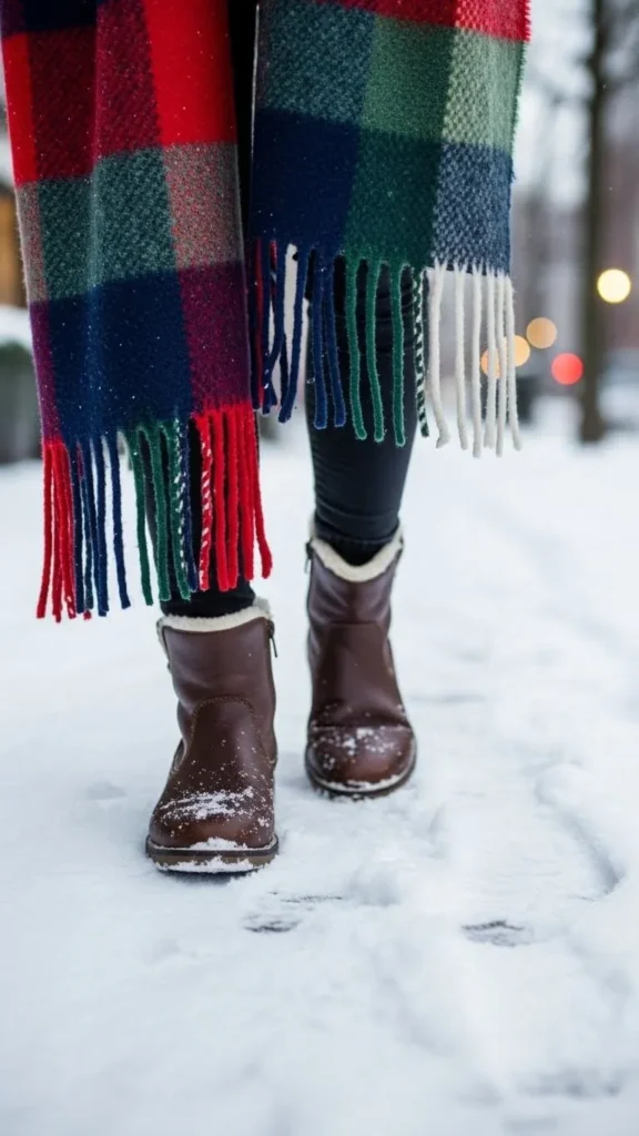 21. Sherpa-Lined Boots with Plaid Blanket Scarf