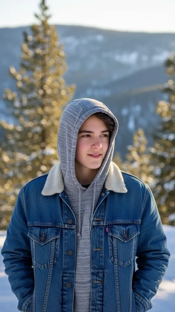 Throw a cozy hoodie under a denim jacket for a casual, layered winter outfit. Hoodies are usually budget-friendly and add softness. Denim jackets add structure and contrast. This combo works well with jeans or joggers.