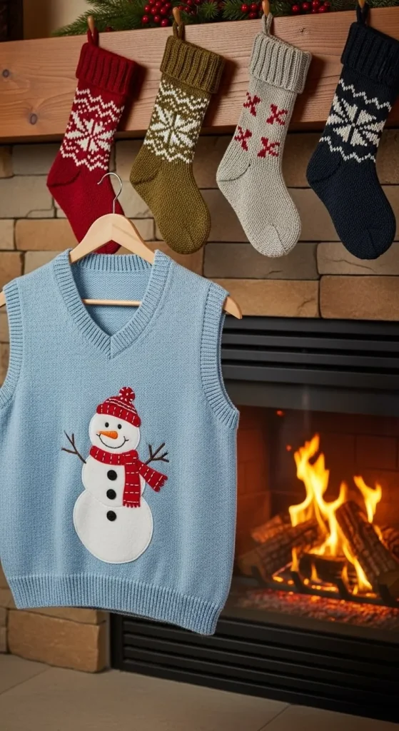 A snowman sweater vest is a cute and practical DIY project. Start with a plain sweater vest and use fabric paint or felt to create a snowman design. Add some 3D elements like buttons or a small scarf. Pair the vest with a white shirt and a pair of dark jeans for a winter-ready outfit.