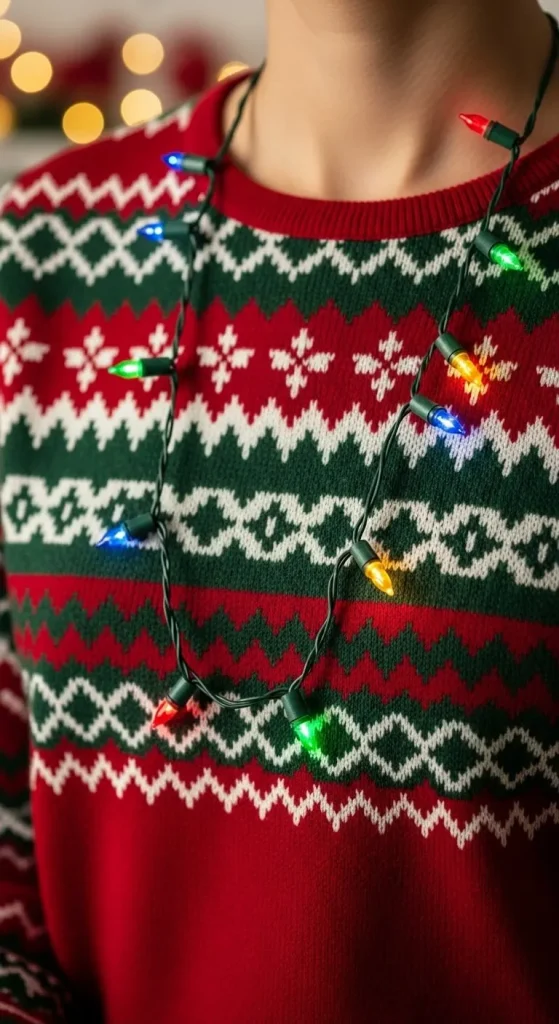 Light up your outfit with a DIY Christmas light necklace. Use mini battery-operated Christmas lights and string them into a necklace. This glowing accessory is a fun and eye-catching way to celebrate the season.