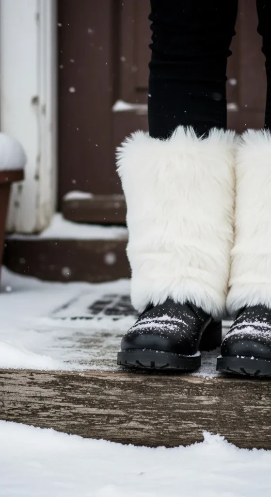 Add some winter magic to your boots by making snowy boot covers from faux fur. Simply cut the faux fur into a long strip and attach it around the top of your boots. These covers will make your boots look extra cozy and festive.
