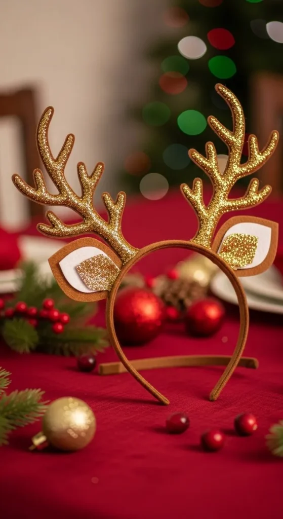 Create a simple yet fun reindeer headband to match your Christmas outfit. Use a plain headband and attach brown felt or pipe cleaners shaped like antlers. For added flair, sprinkle some gold glitter or hang tiny bells from the tips of the antlers. These DIY antlers are perfect for adding a playful touch to any holiday look.