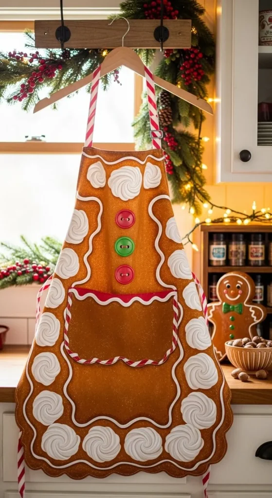 Wear your holiday spirit on your sleeve—literally—with a gingerbread cookie apron. Use fabric paint to create a cute gingerbread design, complete with frosting and candy details. This is the perfect accessory for holiday baking sessions.