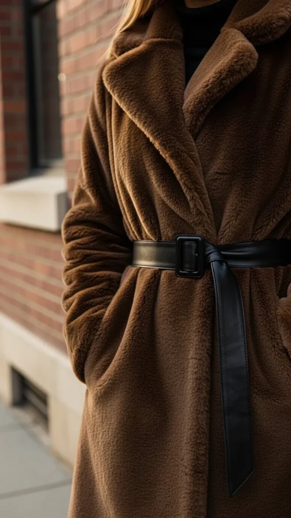 5. Belt Your Faux Fur Coat for a Shaped Silhouette