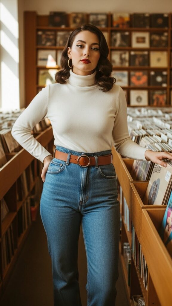 10. Retro Vibes with High-Waisted Jeans and Turtleneck