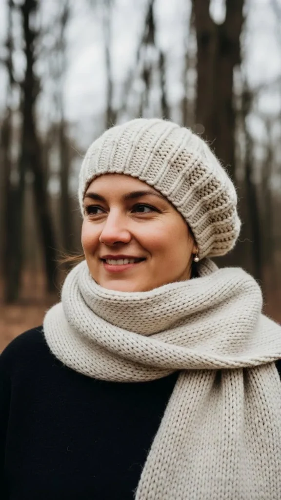 15. Fluffy Knit Beret with Long Wool Scarf