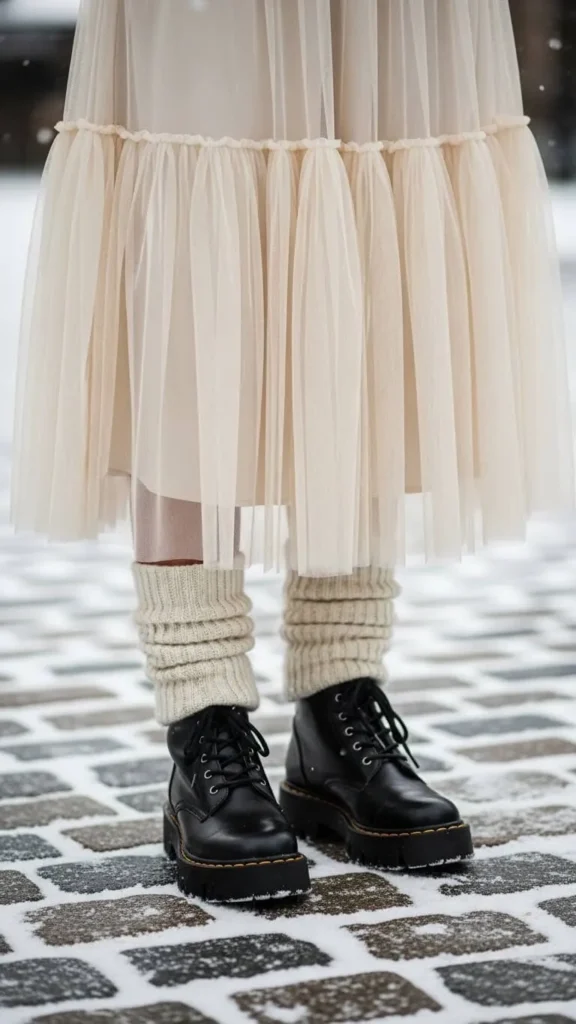 13. Tulle Skirt with Thick Wool Socks and Chunky Boots