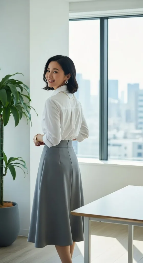 A white shirt and skirt combo is the epitome of professional elegance. Choose a skirt in a festive fabric, like velvet or satin, to add a holiday touch. Pair with neutral pumps for an extra polished finish. Budget-friendly tips include thrifting for skirts or repurposing a classic white blouse and pairing it with your existing wardrobe pieces.