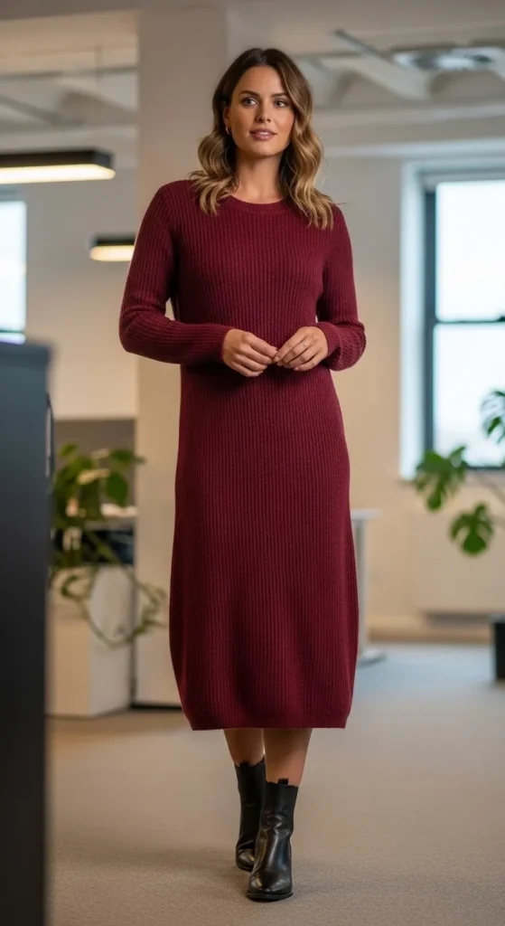 A cozy knit dress is perfect for those cold work holiday events. The soft fabric is comfortable yet stylish, while the color adds warmth to the outfit. Look for dresses with subtle details, like a mock neck or bell sleeves, to add character. A budget-friendly option is buying a basic knit dress and adding a belt or accessories to make it more festive.