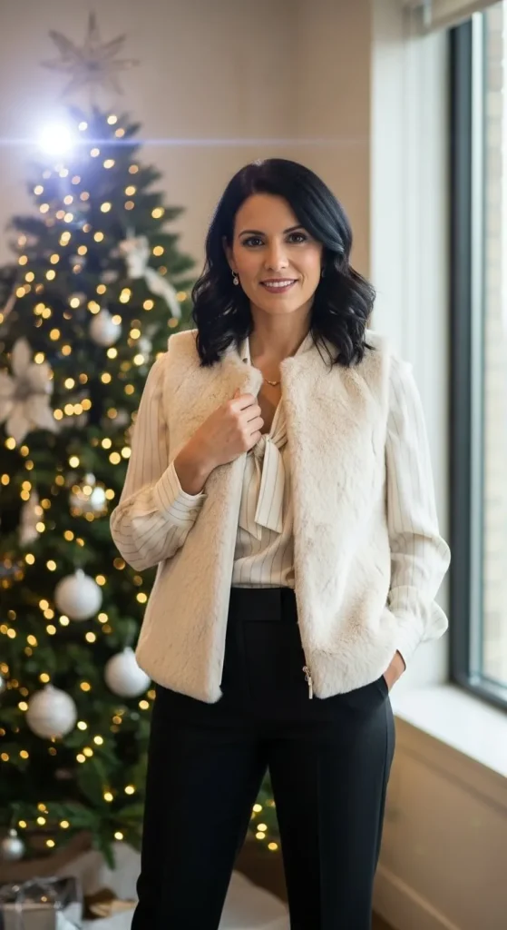 A faux fur vest adds texture and luxury to any outfit, making it perfect for the holiday season. Pair it with dress pants for a more polished look. Choose a neutral-colored faux fur vest for versatility. Faux fur options are widely available, making it a budget-friendly choice to upgrade your holiday attire.