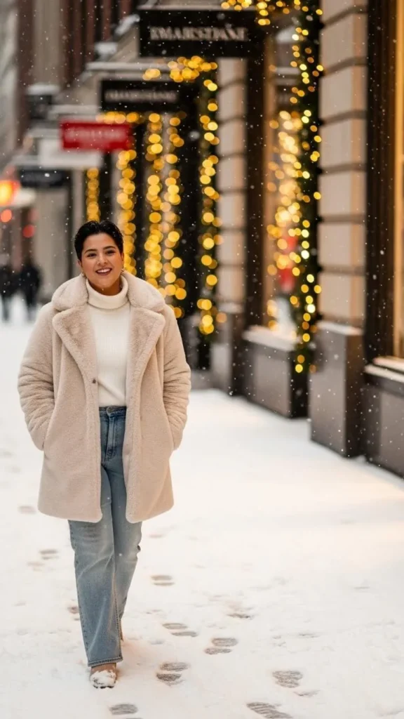 Velvet is holiday-ready without trying hard. A velvet dress in rich colors like burgundy, emerald, or navy works wonders. Keep legs warm with dark tights. Swap heels for comfortable ankle boots to keep walking easy in chilly weather. If you can’t splurge, try thrift stores for velvet pieces. Pair with a faux fur scarf and simple accessories to shine without extra effort.