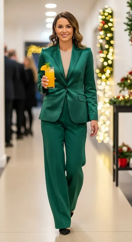 A satin blazer offers a chic, sophisticated twist on traditional cocktail attire. Pairing it with high-waisted pants creates a modern, elegant silhouette that’s both comfortable and stylish. The smooth sheen of the blazer reflects light beautifully, making it ideal for evening events. If you’re on a budget, look for secondhand or discount versions of satin blazers at stores like H&M or Mango, and pair with a simple black top.