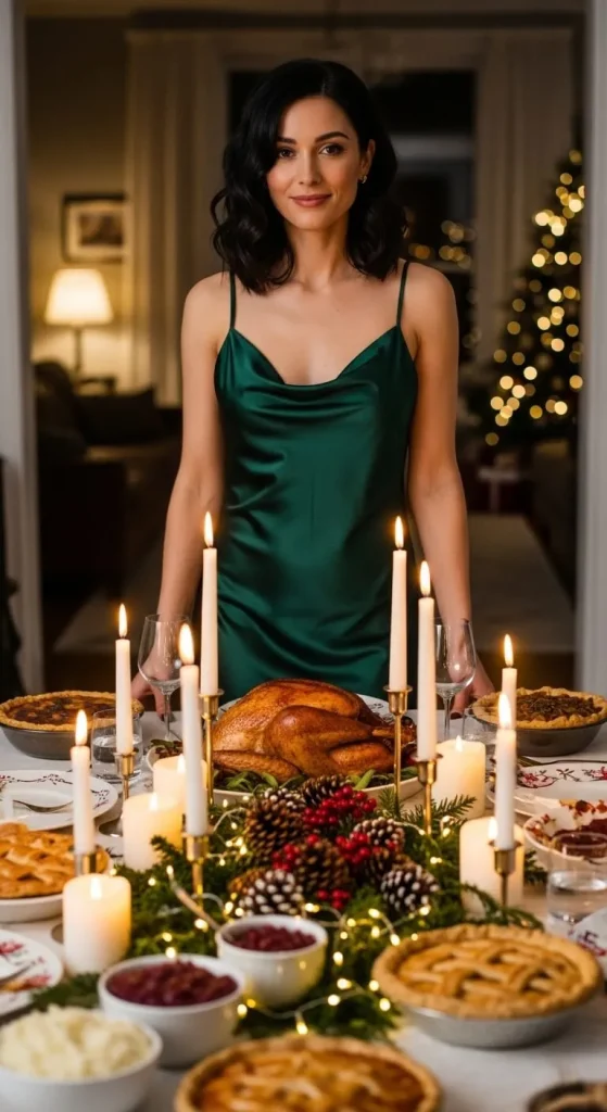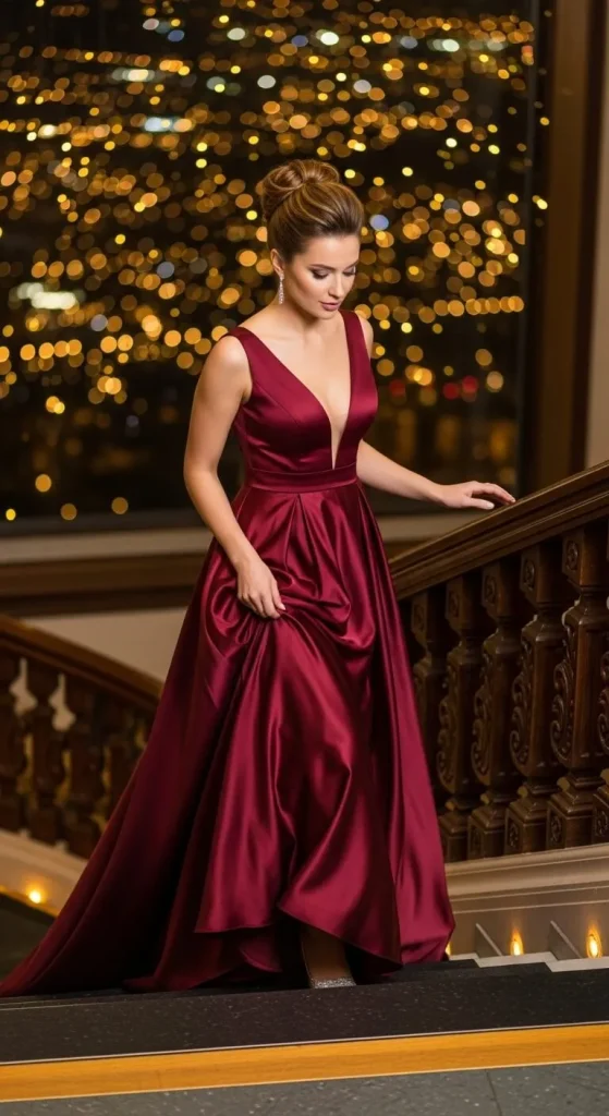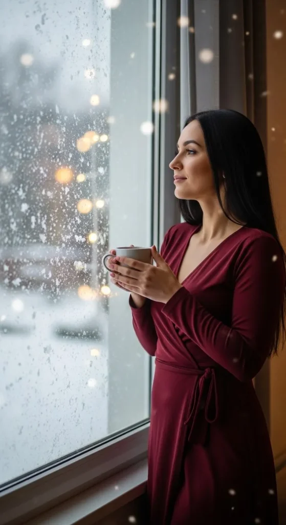The wrap style flatters every body type. A burgundy shade feels rich and warm. Wear it with ankle boots and a long coat for chilly evenings. If you already own a wrap dress, refresh it with festive accessories like pearl hairpins or velvet scrunchies.