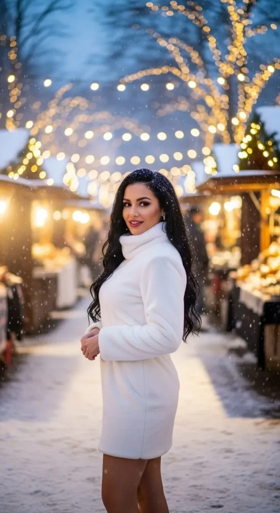 For casual holiday vibes, try a white knit dress. It’s cozy yet chic. Pair with knee-high boots and a long wool coat. Add a wide belt for structure. To DIY, upcycle an oversized sweater into a mini dress — comfy, stylish, and affordable.