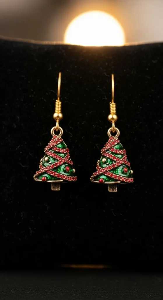 These tiny accessories pack a punch! Choose earrings that feature holiday symbols like Christmas trees, stars, or snowflakes for an extra bit of cheer. These playful pieces add a fun, lighthearted touch to your outfit without being overwhelming.
