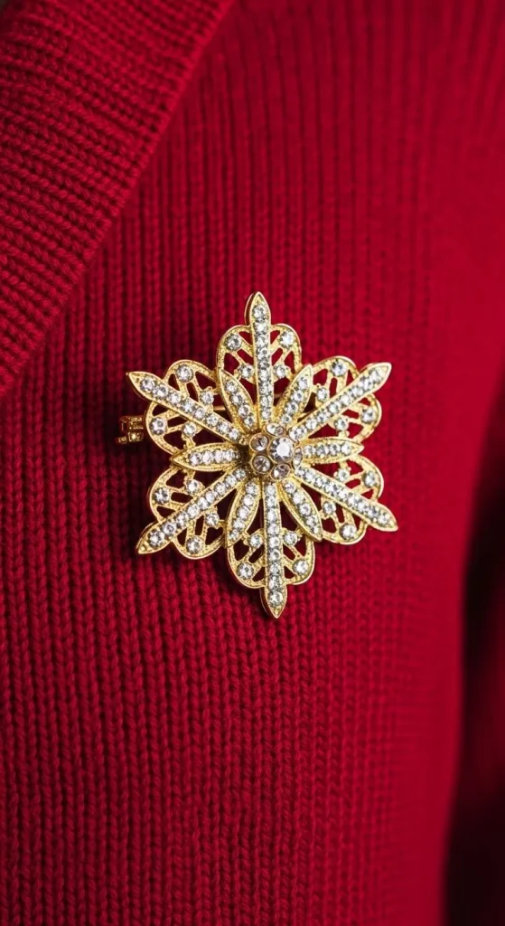A classic holiday brooch can turn any outfit into something special. Pin one to your coat, sweater, or even a scarf for an extra dash of holiday cheer. Brooches come in many shapes, from snowflakes to reindeer, and they can be worn in various ways to add personality to your look.