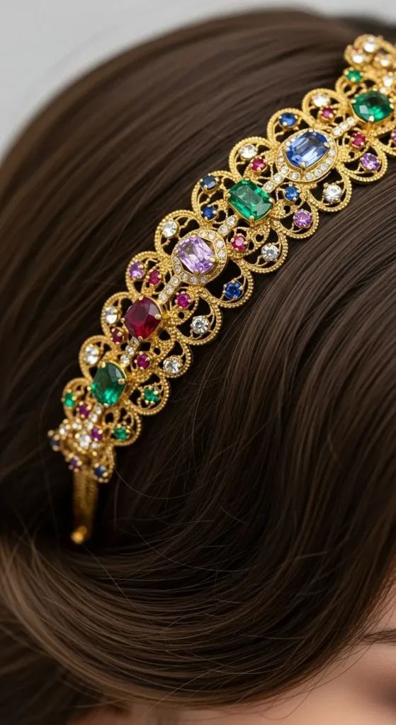 For an extra touch of glamour, rhinestone headbands are the perfect accessory. These headbands can complement a simple updo or add sparkle to a loose hairstyle. Pair it with a velvet dress or a classic black outfit for a sophisticated touch of bling.