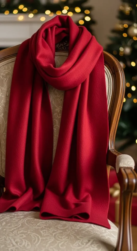 Holiday scarves add warmth and style. Go for bold patterns like plaids or classic red and green for a festive vibe. Wool or cashmere scarves keep you cozy during chilly nights while still looking stylish. To give your scarf a personalized touch, layer it with a brooch or pin for added flair.