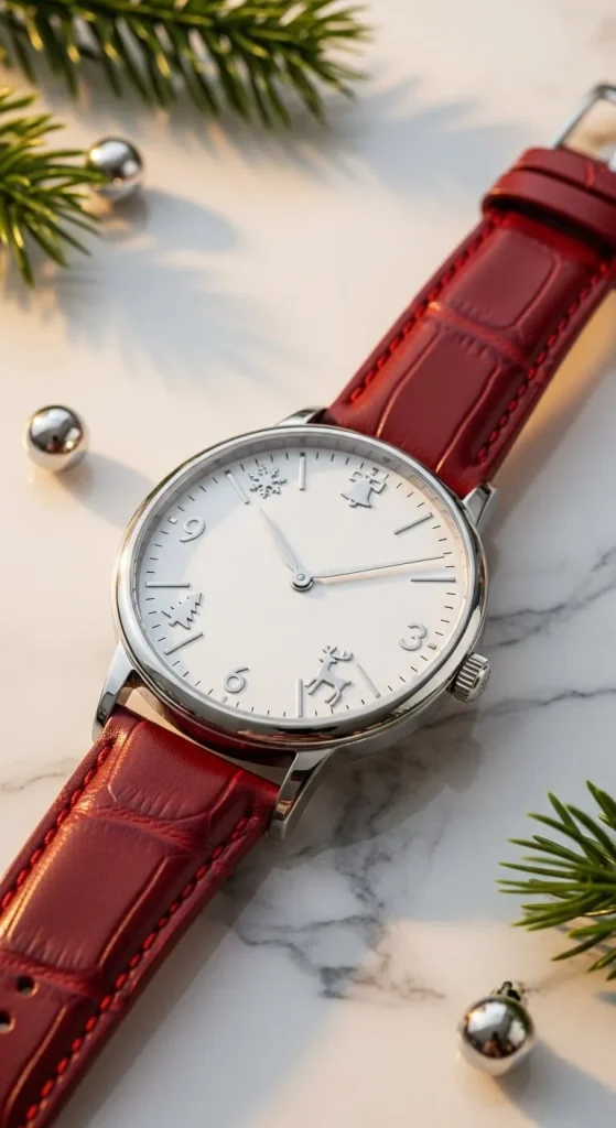 A holiday-themed watch is both practical and festive. Look for ones with red, green, or gold accents to match the season’s colors. Watches with subtle embellishments like holly leaves or snowflakes on the face add a whimsical touch without overwhelming your look. It’s a perfect accessory for those who want to keep track of time in style.