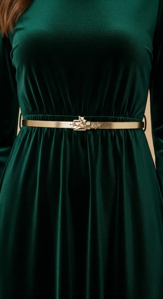 A metallic belt is an easy way to define your waist while adding a hint of shine to your holiday ensemble. Whether you go for silver, gold, or bronze, a metallic belt can complement a simple dress or add the finishing touch to a more elaborate outfit. Use a belt to add structure to a flowy dress or to emphasize your figure.