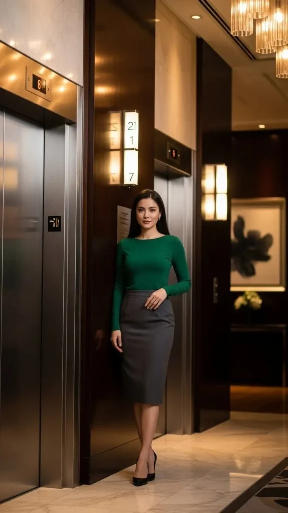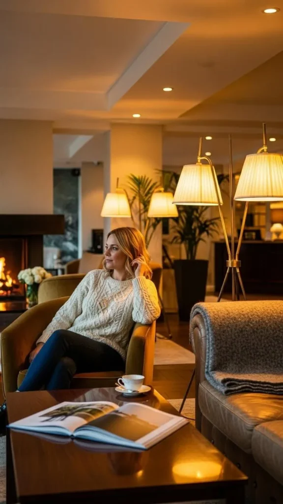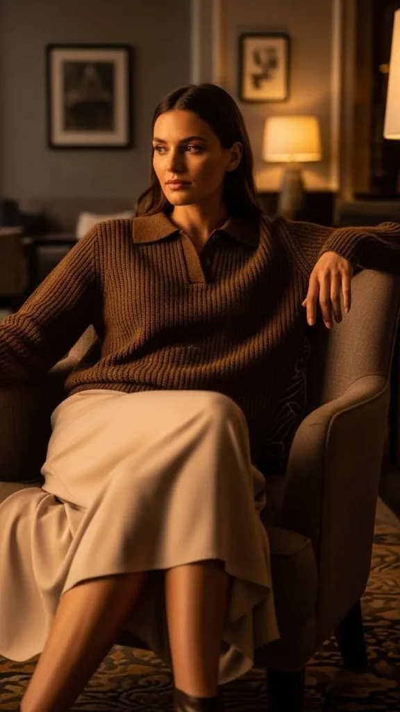Pairing a cashmere sweater with a pleated skirt gives you comfort and movement at the same time. Choose a thin-knit sweater so you don’t feel bulky under coats. Pleated skirts add flow and instantly dress up a simple top. Stick to neutral shades like grey, camel, or navy. If it’s cold, wear thermal tights and ankle boots. This look works for work lunches, holiday receptions, and relaxed meetings. Pack a small sweater comb to keep the knit looking neat.