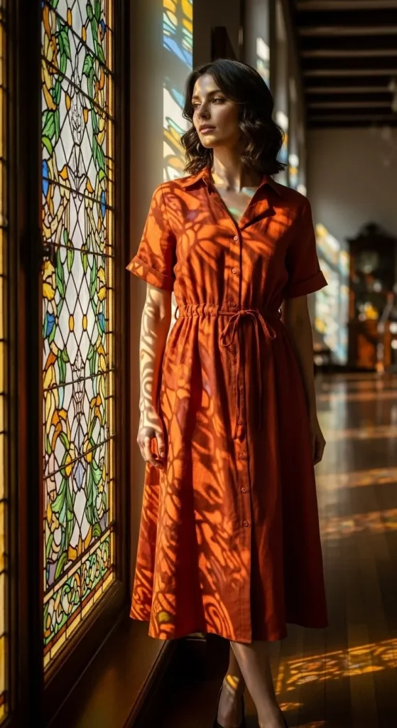 A buttoned midi dress offers modest coverage and simple style. The waist tie shapes the look without being tight. Pair it with boots or flats. If you want a budget trick, replace the tie with a belt you already have. Add a small handbag and minimal jewellery. This outfit suits both morning and evening holiday gatherings.