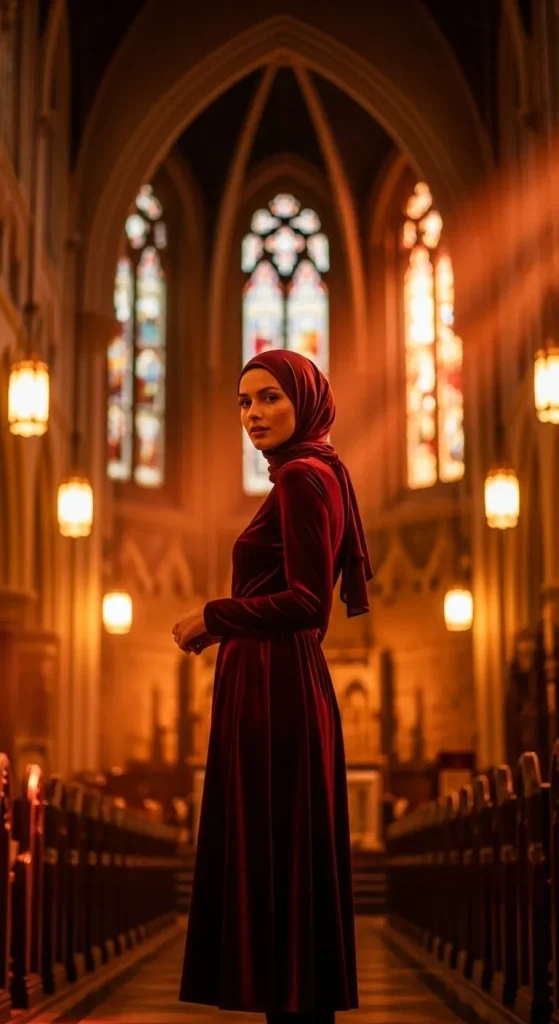 Choose a midi dress in a calm colour like navy, burgundy, or forest green. Add a soft cardigan for warmth and coverage. Keep jewellery simple—small hoops or a thin bracelet work well. If you want extra polish, tie your hair in a low bun. For a budget-friendly option, layer a cardigan you already own and pair it with a dress you’ve worn before. Switch shoes to closed-toe flats for comfort during longer services. This combo always looks calm, modest, and ready for holiday gatherings.