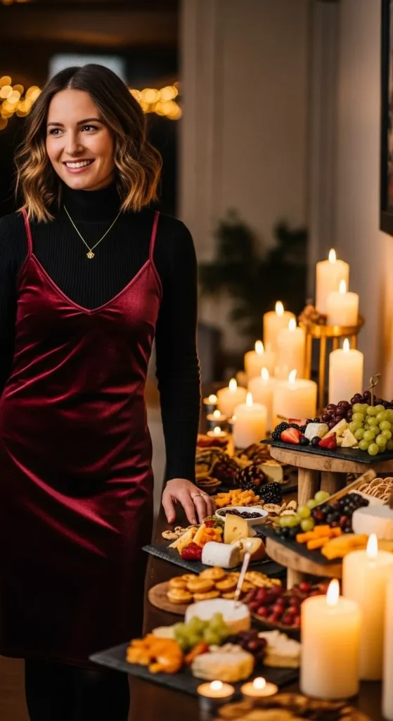 A velvet slip dress has a festive feel that suits house gatherings. Layering it over a turtleneck adds warmth. Pick deep tones like burgundy or forest green. Add tights if the house is cool. Complete the outfit with ballet flats or boots. If you’re on a budget, thrift stores often have holiday-ready slip dresses. Add dainty necklaces to sit above the turtleneck. Keep hair simple with a bun or soft curls.
