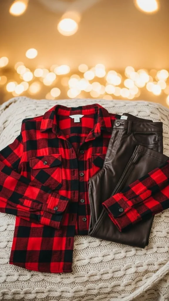 A flannel shirt feels relaxed but still festive, especially in red or green tones. Wear it with leather leggings and boots. Add a tiny embroidered patch on the pocket for DIY charm. This is ideal for outdoor markets, family visits, or casual meetups.