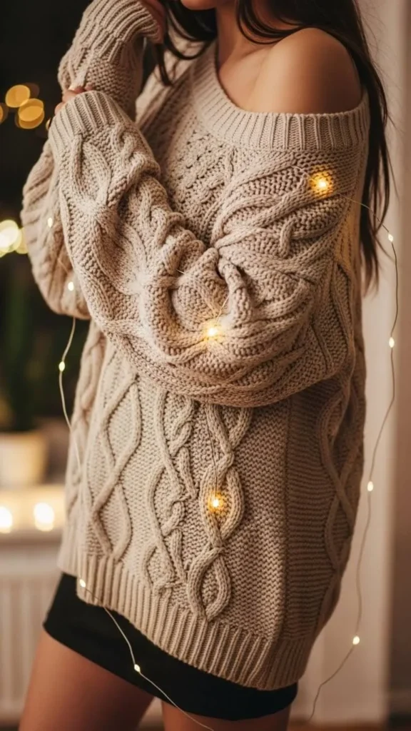 A knitted dress is warm and quick to style. Add a belt to shape your waist. Stick a few sequins on the cuffs for a small DIY touch. Wear tights and boots for extra warmth. This works well for relaxed dinners or casual meetups. It’s a one-piece outfit that takes seconds to style.