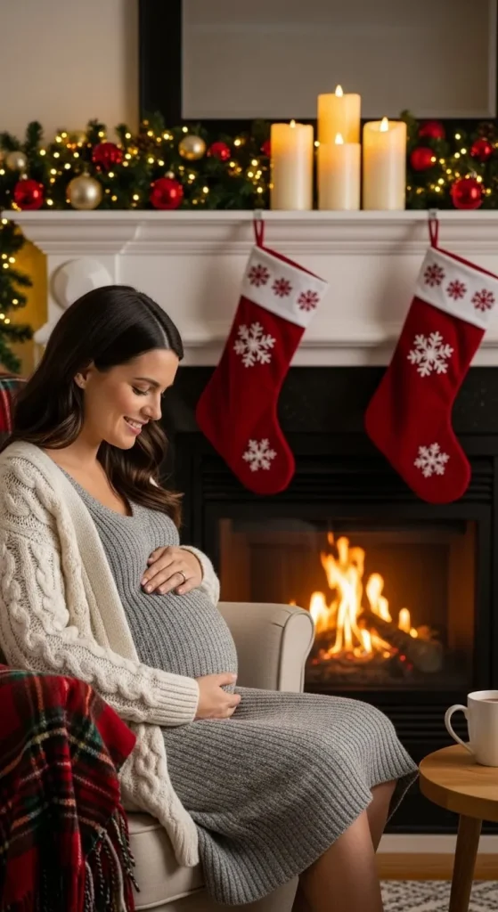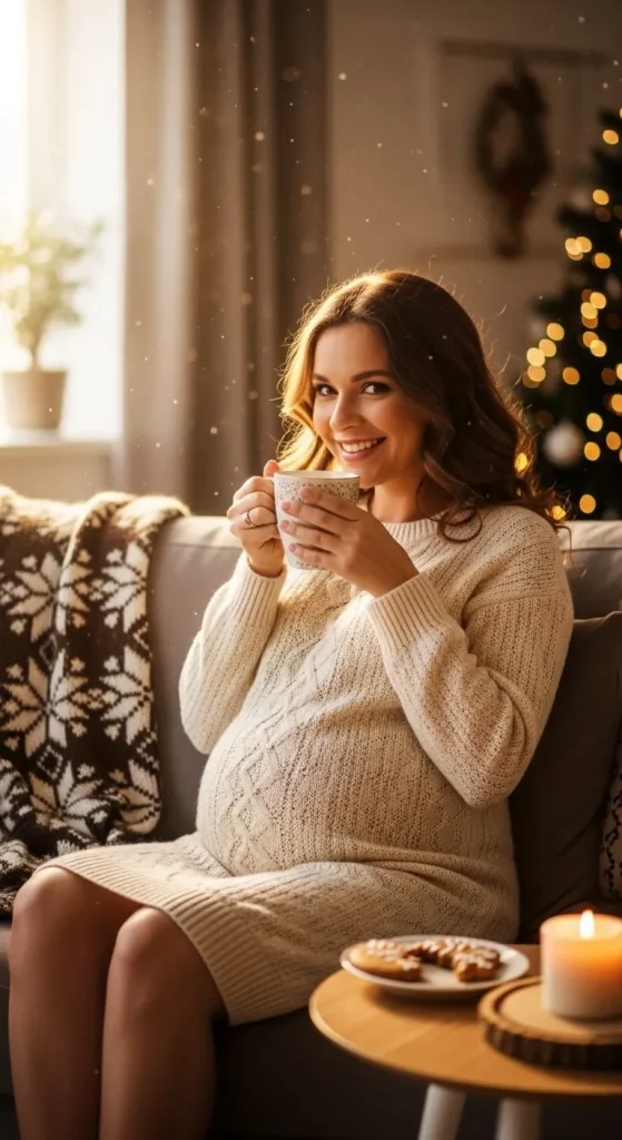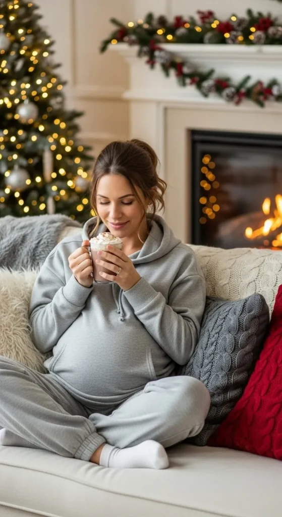 For a more casual, relaxed holiday look, nothing beats a cozy hoodie and sweatpants. This outfit is ideal for holiday mornings spent at home, enjoying breakfast or opening gifts. Choose a soft, oversized hoodie that fits comfortably around your belly. Pair it with stretchy sweatpants for extra comfort. Add some holiday-themed socks or a fun beanie to make the outfit feel more festive without sacrificing comfort.