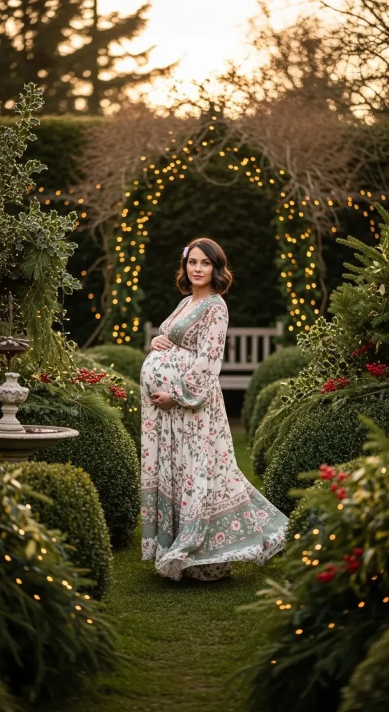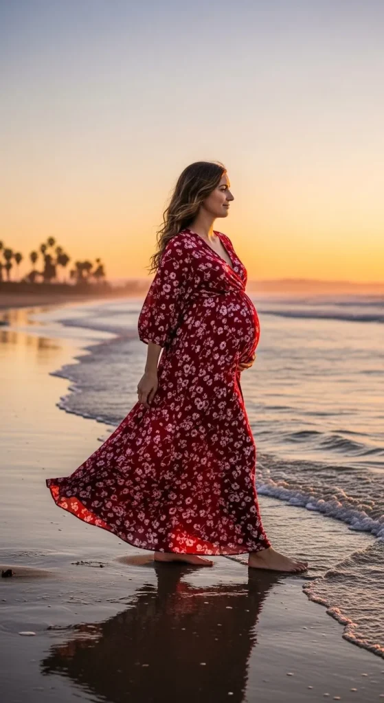A bohemian-style maternity dress is a beautiful option for a relaxed holiday gathering. With its loose, flowing design, the dress allows for plenty of movement and comfort, while the floral or patterned fabric adds a touch of festive flair. Opt for a dress with soft, breathable fabric to keep you cool, and layer with a chunky knit cardigan or shawl for added warmth. This outfit works well for a laid-back holiday brunch or an afternoon spent with family.