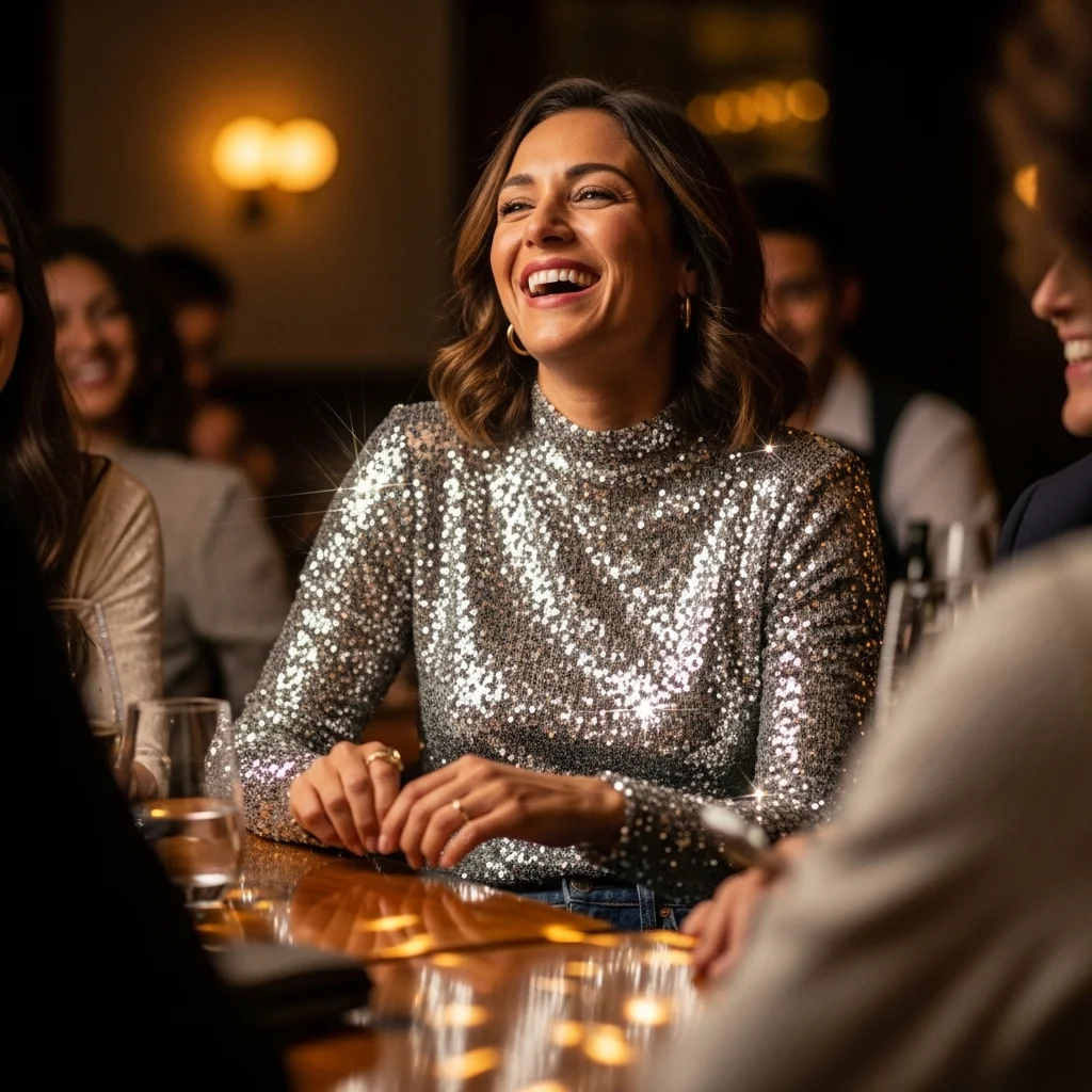 A sequin top instantly makes any outfit feel party-ready. Pair it with dark skinny jeans or black trousers for balance. Add hoop earrings and ankle boots for a cool edge. If you don’t want to spend much, look for thrifted or secondhand sequins—they’re often barely worn and look brand new.