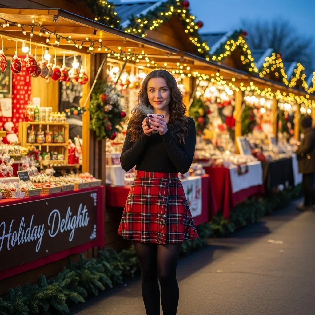 A plaid skirt screams Christmas cheer. Match it with a fitted black top and tights for warmth. Add boots and a beret for a charming touch. You can even reuse a school-style skirt and make it festive with sparkly accessories.