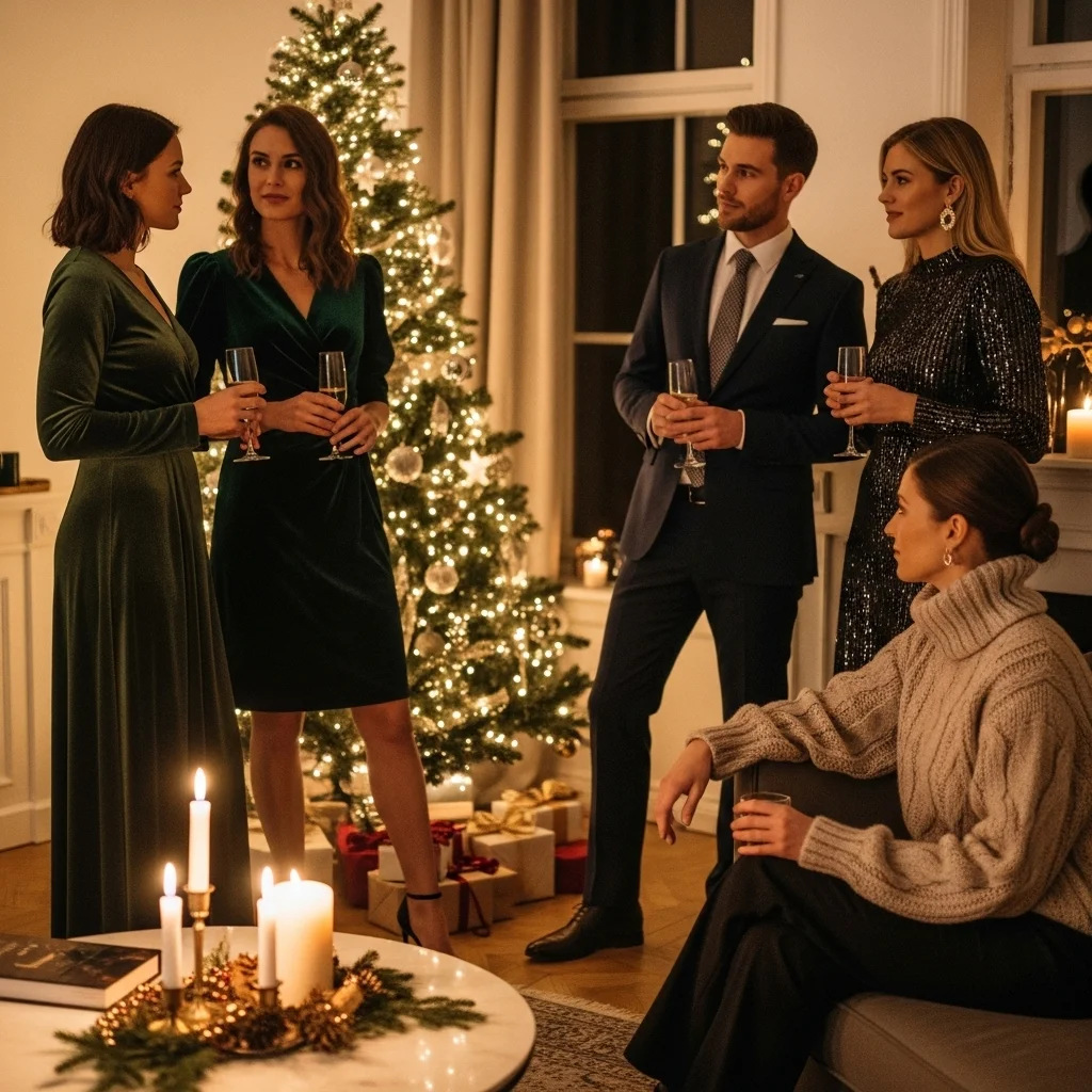 Nothing says holiday like a classic red dress. Choose one in satin or velvet for that festive glow. Pair it with nude or gold heels and simple jewelry to keep the focus on the color. If you’re on a budget, grab an old red dress and refresh it by adding a belt or layering a cropped jacket. Red never fails to stand out in photos or candlelight dinners.