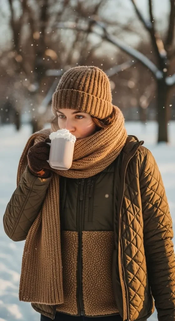 For a practical and cozy layering option, pair a puffer jacket with a cashmere sweater. The puffer jacket provides insulation against the cold, while the cashmere sweater adds a touch of luxury. If you’re on a budget, consider searching for high-quality cashmere sweaters from off-season sales or second-hand shops. This look is perfect for outdoor adventures, and you can layer it with leggings or jeans for an easy, stylish outfit.