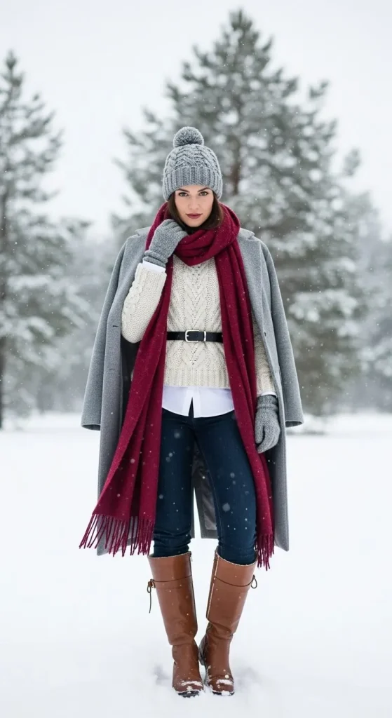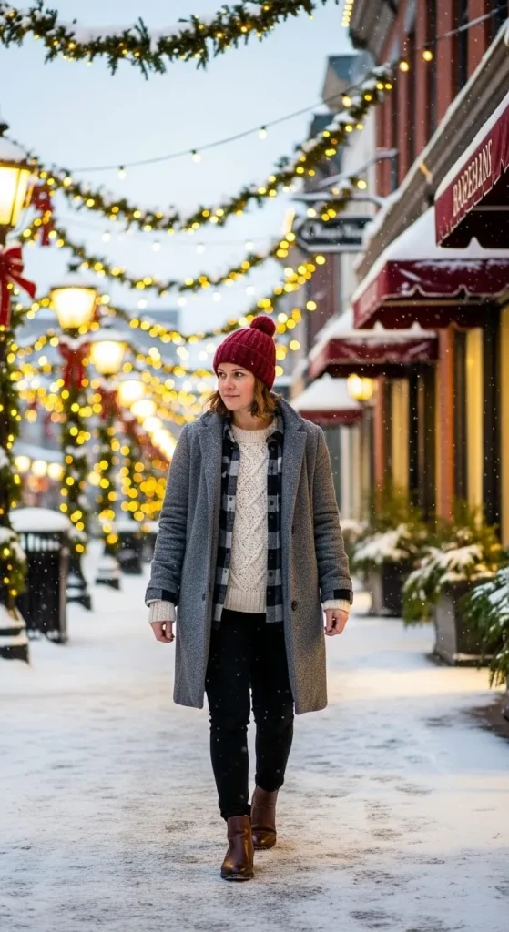 A fur collar coat layered with a wool hat gives you an elegant, warm look. The fur collar adds extra texture, while the wool hat completes the cozy feel. This outfit works for holiday dinners, formal events, or winter outings. Consider shopping for vintage coats or adding a unique touch to your wool hat by adding fun patches or embellishments.