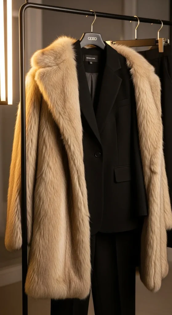 A faux-fur coat makes any outfit look ready for the holidays. Wear it over a monochrome outfit so the texture stands out. You can find budget-friendly faux-fur pieces at thrift stores or seasonal sales. Keep accessories light and shoes simple. If your old coat looks flat, comb it gently with a wide-tooth brush to revive the fluff.