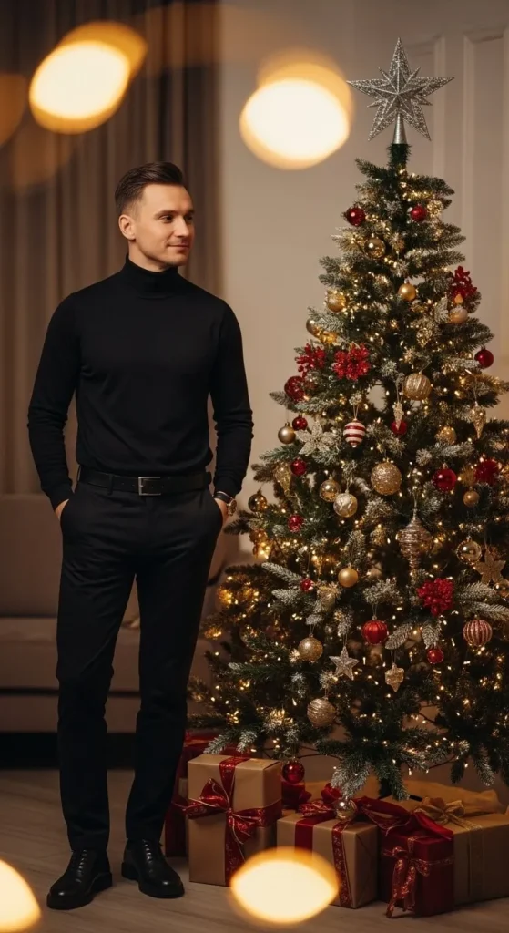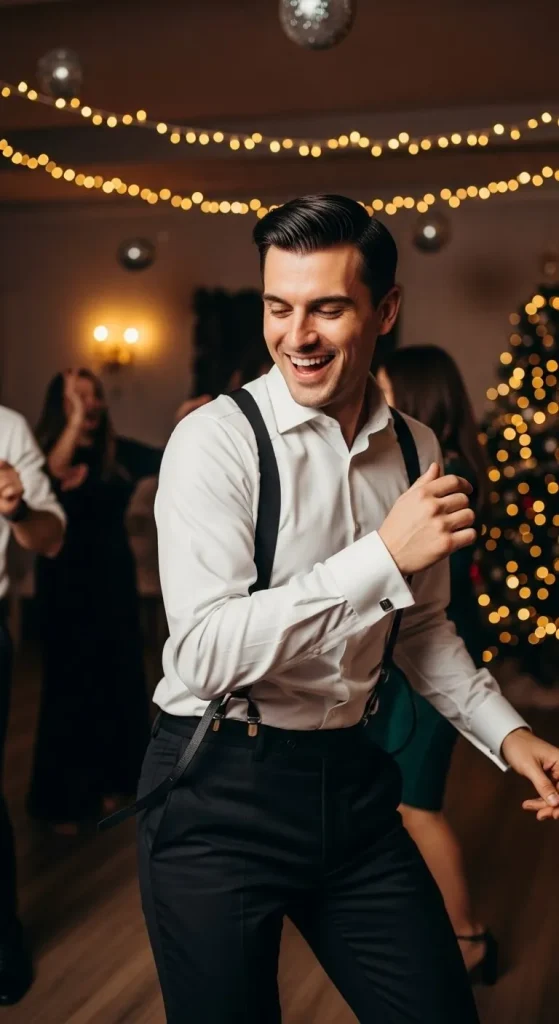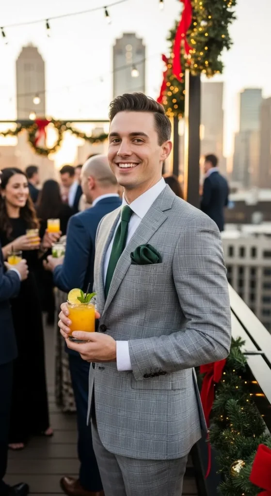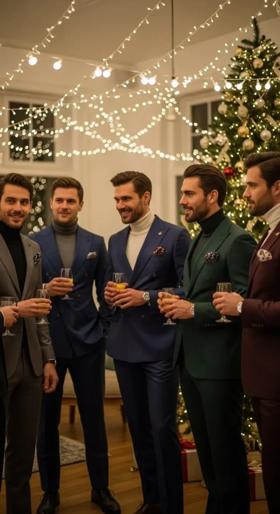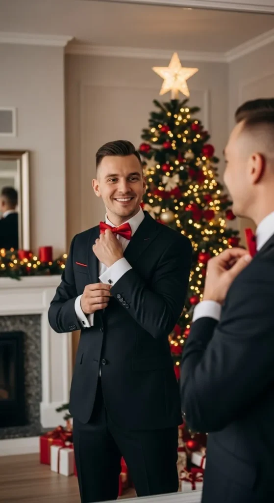 Accessories complete the look. Think tie bars, cufflinks, or festive socks. Mix subtle metallics or hints of red. They add personality without overdoing it.