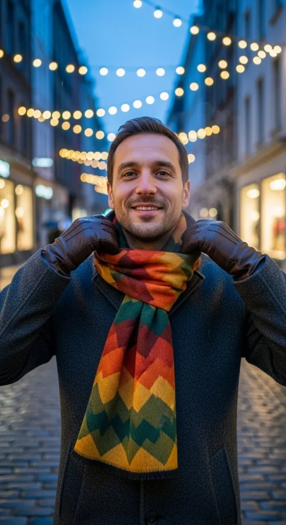 A statement scarf can transform any outfit. Pick wool or cashmere in plaid or bold tones. Drape it neatly or tie it European-style. Small touch — big impact.