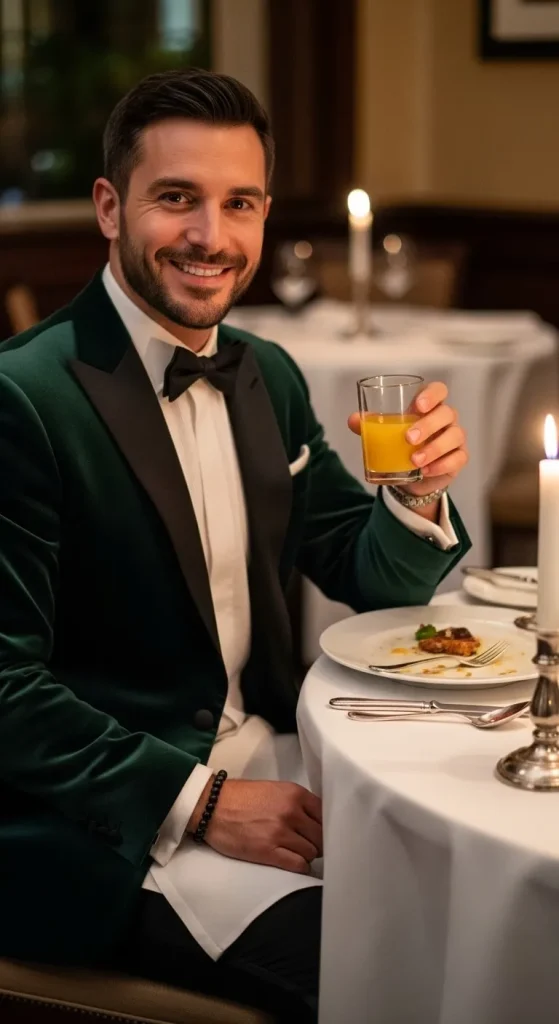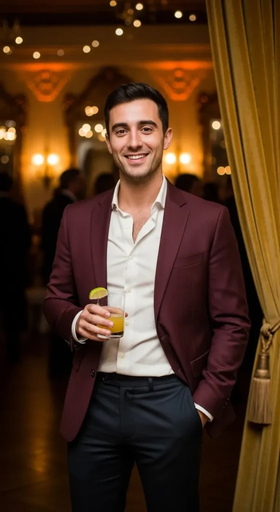 Velvet adds instant class. Go for deep tones like emerald or midnight blue. Pair it with slim black trousers and a crisp white shirt. Add a black bow tie for extra elegance. You’ll stand out in every photo.