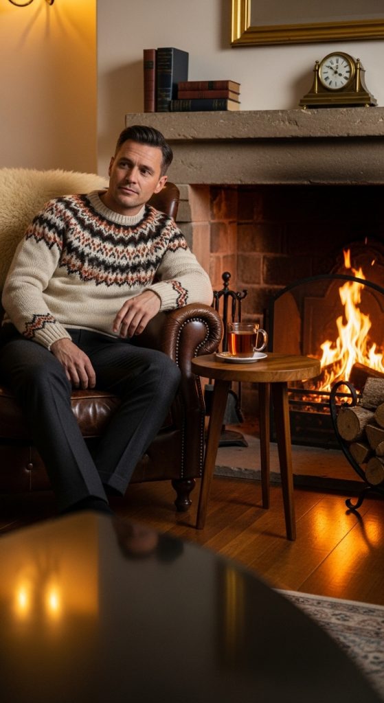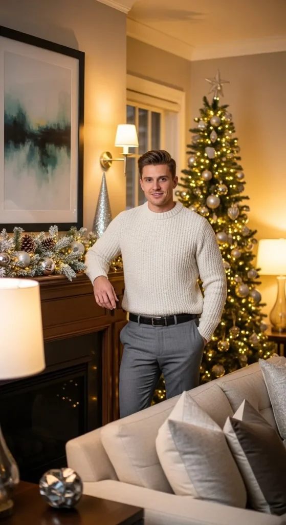 Holiday knits don’t need to be loud. Choose subtle patterns in dark tones. Combine with wool trousers for comfort. Add leather sneakers or boots to complete your smart-casual winter vibe.